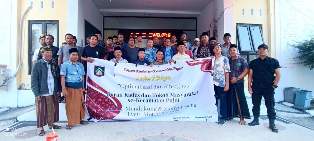 Bertempat di kantor Camat Pujut Lombok Tengah, Forum Kepala Desa Kecamatan Pujut bersama Tokoh Masyarakat, Tokoh Agama dan Tokoh Adat menggelar Loka Karya atau Pertemuan pada sabtu sore tanggal 20 september 2025, sebagai bukti yang menegaskan komitmen mereka mendukung penuh suksesnya penyelenggaraan Event MotoGP Indonesia 2025.